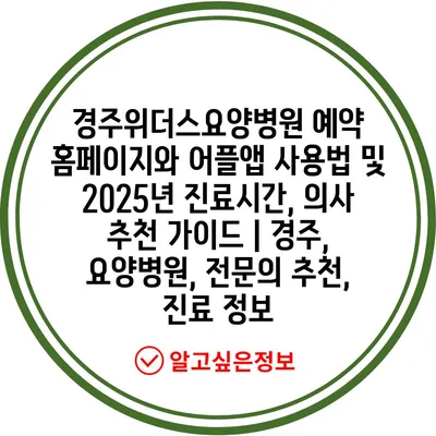 ✅ 경주위더스요양병원의 예약 방법을 쉽게 알아보세요.