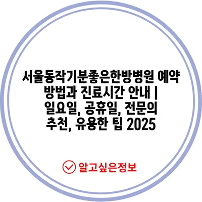 서울동작기분좋은한방병원 예약 방법과 진료시간 안내 | 일요일, 공휴일, 전문의 추천, 유용한 팁 2025