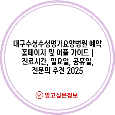 대구수성수성명가요양병원 예약 홈페이지 및 어플 가이드 | 진료시간, 일요일, 공휴일, 전문의 추천 2025