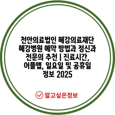 천안의료법인 혜강의료재단 혜강병원 예약 방법과 정신과 전연락 추천 | 진료시간, 어플앱, 일요일 및 공휴일 정보 2025에 대해 알아보겠습니다.
