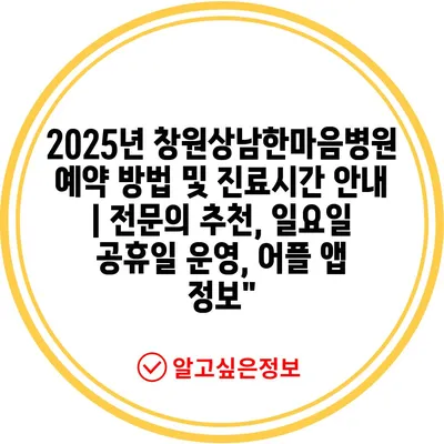 2025년 창원상남한마음병원 예약 방법 및 진료시간 공지 | 전연락 추천, 일요일 공휴일 운영, 어플 앱 정보