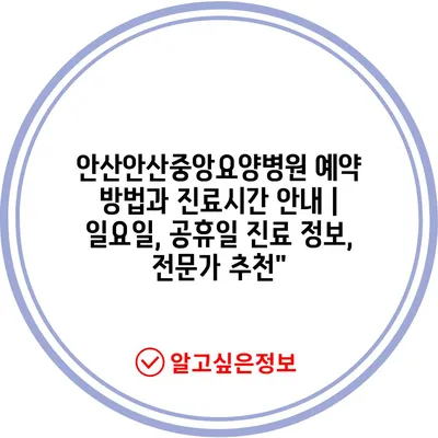 안산안산중앙요양병원 예약 방법과 진료시간 공지 | 일요일, 공휴일 진료 정보, 전문가 추천에 대해 자주 묻는 질문 TOP 5