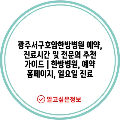 ✅ 광주서구호암한방병원 예약 방법을 자세히 알아보세요.