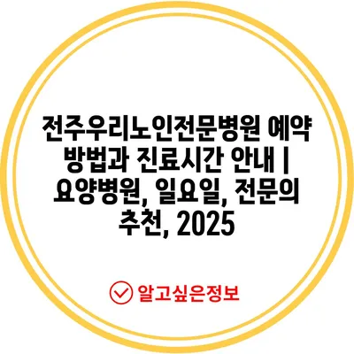 전주우리노인전문병원 예약 방법과 진료시간 공지 | 요양병원, 일요일, 전연락 추천, 2025 에 대해 자주 묻는 질문 TOP 5