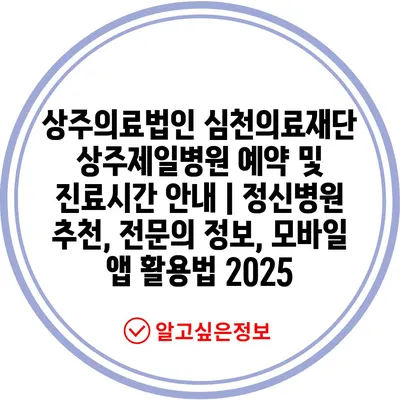 상주의료법인 심천의료재단 상주제일병원 예약 및 진료시간 안내 | 정신병원 추천, 전문의 정보, 모바일 앱 활용법 2025