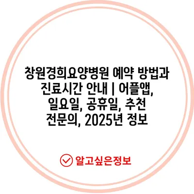 창원경희요양병원 예약 방법과 진료시간 공지 | 어플앱, 일요일, 공휴일, 추천 전연락, 2025년 정보 에 대해 자주 묻는 질문 TOP 5