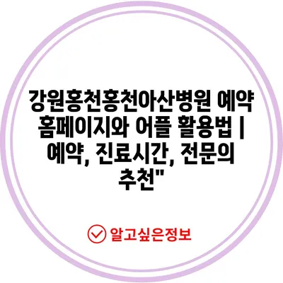 ✅ 강원홍천홍천아산병원 예약 방법을 자세히 알아보세요.