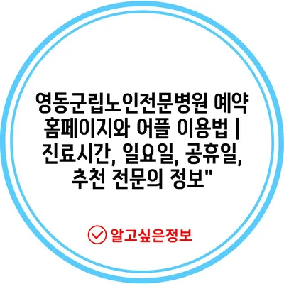 ✅ 영동군립노인전문병원 예약 방법을 자세히 알아보세요.
