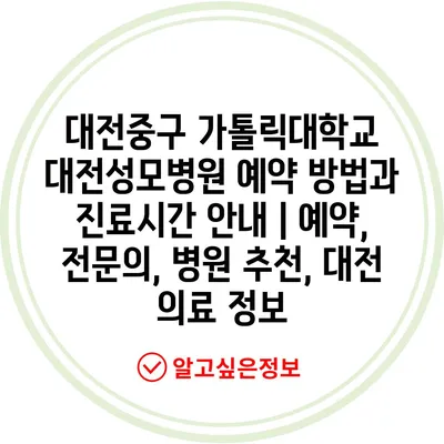 ✅ 대전성모병원 진료시간과 예약 방법을 자세히 알아보세요.
