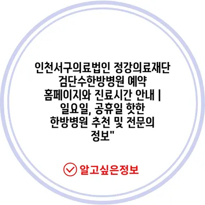 ✅ 인천서구 병원 예약 절차를 간편하게 알아보세요!