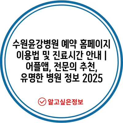 수원윤강병원 예약 홈페이지 이용법 및 진료시간 공지 | 어플앱, 전연락 추천, 유명한 병원 정보 2025에 대해 알아보겠습니다.