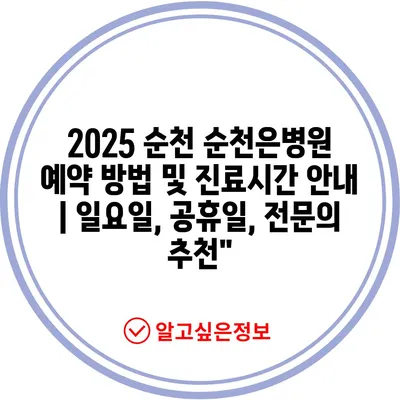 ✅ 순천은병원 예약 및 진료시간에 대한 필수 정보를 알아보세요.