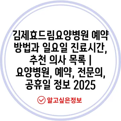 김제효드림요양병원 예약 방법과 일요일 진료시간, 추천 의사 목록 | 요양병원, 예약, 전연락, 공휴일 정보 2025 에 대해 자주 묻는 질문 TOP 5