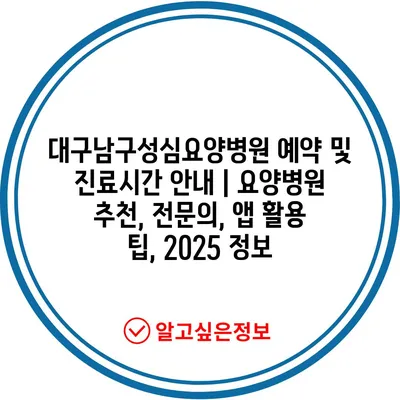 대구남구성심요양병원 예약 및 진료시간 공지 | 요양병원 추천, 전연락, 앱 활용 팁, 2025 정보 에 대해 자주 묻는 질문 TOP 5