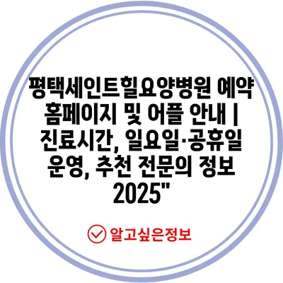 평택세인트힐요양병원 예약 홈페이지 및 어플 공지 | 진료시간, 일요일·공휴일 운영, 추천 전연락 정보 2025