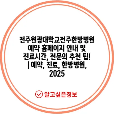 전주원광대학교전주한방병원 예약 홈페이지 안내 및 진료시간, 전문의 추천 팁! | 예약, 진료, 한방병원, 2025