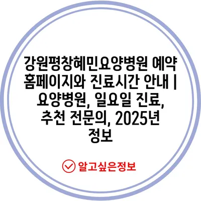 강원평창혜민요양병원 예약 홈페이지와 진료시간 공지 | 요양병원, 일요일 진료, 추천 전연락, 2025년 정보 에 대해 자주 묻는 질문 TOP 5