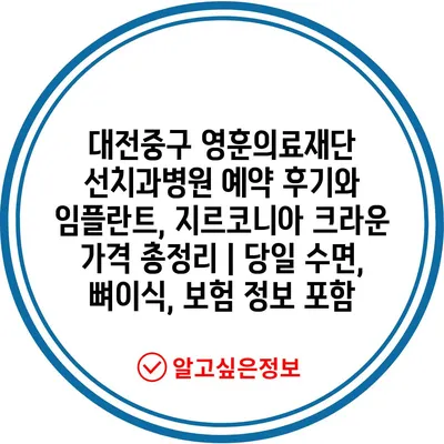 대전중구 영훈의료재단 선치과병원 예약 후기와 임플란트, 지르코니아 크라운 가격 총정리 | 당일 수면, 뼈이식, 보험 정보 포함 에 대해 자주 묻는 질문 TOP 5