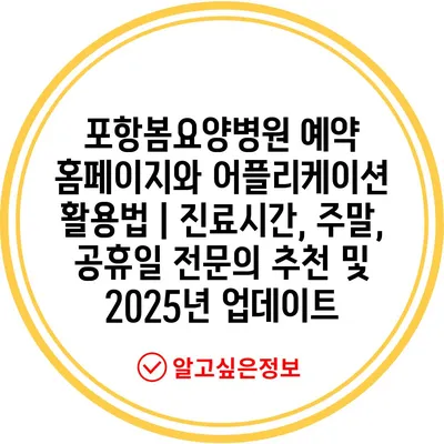 포항봄요양병원 예약 홈페이지와 어플리케이션 활용법 | 진료시간, 주말, 공휴일 전연락 추천 및 2025년 업데이트