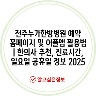 전주누가한방병원 예약 홈페이지 및 어플앱 활용법 | 한의사 추천, 진료시간, 일요일 공휴일 정보 2025에 대한 공지를 제공합니다.
