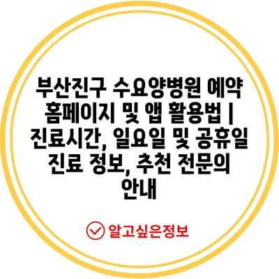 ✅ 부산진구 수요양병원의 진료 정보와 예약 방법을 알아보세요.