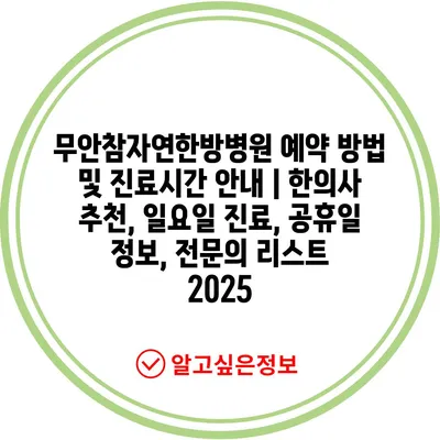 무안참자연한방병원 예약 방법 및 진료시간 공지 | 한의사 추천, 일요일 진료, 공휴일 정보, 전연락 리스트 2025