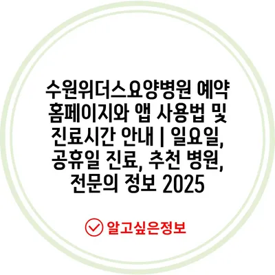 수원위더스요양병원 예약 홈페이지와 앱 사용법 및 진료시간 공지 | 일요일, 공휴일 진료, 추천 병원, 전연락 정보 2025에 대해 소개합니다.