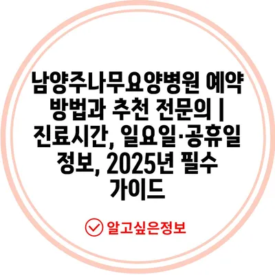 남양주나무요양병원 예약 방법과 추천 전연락 | 진료시간, 일요일·공휴일 정보, 2025년 필수 설명서에 대해 자주 묻는 질문 TOP 5