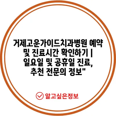 ✅ 거제고운가이드치과병원의 진료시간과 예약 방법을 쉽게 알아보세요.