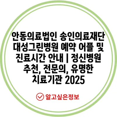 안동의료법인 송인의료재단 대성그린병원 예약 어플 및 진료시간 공지 | 정신병원 추천, 전연락, 유명한 치료기관 2025에 대해 자주 묻는 질문 TOP 5