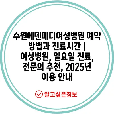 수원에덴메디여성병원 예약 방법과 진료시간 | 여성병원, 일요일 진료, 전연락 추천, 2025년 이용 공지 에 대해 자주 묻는 질문 TOP 5