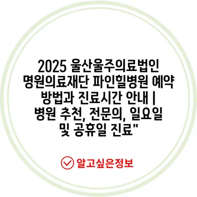 2025 울산울주의료법인 명원의료재단 파인힐병원 예약 방법과 진료시간 공지 | 병원 추천, 전연락, 일요일 및 공휴일 진료에 대해 자주 묻는 질문 TOP 5