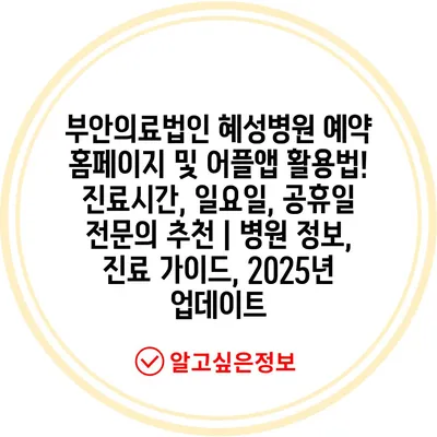 부안의료법인 혜성병원 예약 홈페이지 및 어플앱 활용법! 진료시간, 일요일, 공휴일 전연락 추천 | 병원 정보, 진료 설명서, 2025년 업데이트 에 대해 자주 묻는 질문 TOP 5