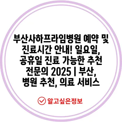 부산사하프라임병원 예약 및 진료시간 공지! 일요일, 공휴일 진료 가능한 추천 전연락 2025 | 부산, 병원 추천, 의료 서비스 에 대해 자주 묻는 질문 TOP 5