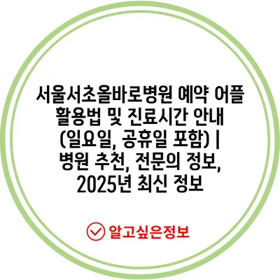 ✅ 서울서초올바로병원 진료시간과 예약 방법을 자세히 알아보세요!