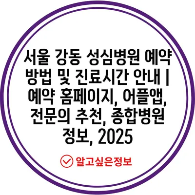 서울 강동 성심병원 예약 방법 및 진료시간 공지 | 예약 홈페이지, 어플앱, 전연락 추천, 종합병원 정보, 2025에 대해 소개하겠습니다.