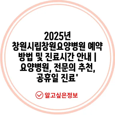 2025년 창원시립창원요양병원 예약 방법 및 진료시간 공지 | 요양병원, 전연락 추천, 공휴일 진료