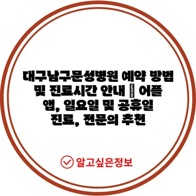 ✅ 대구남구문성병원 예약 방법을 지금 바로 알아보세요!