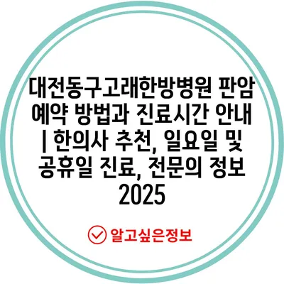 대전동구고래한방병원 판암 예약 방법과 진료시간 공지 | 한의사 추천, 일요일 및 공휴일 진료, 전연락 정보 2025 에 대해 자주 묻는 질문 TOP 5