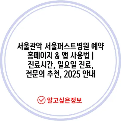서울관악 서울퍼스트병원 예약 홈페이지 & 앱 사용법 | 진료시간, 일요일 진료, 전연락 추천, 2025 공지 에 대해 자주 묻는 질문 TOP 5
