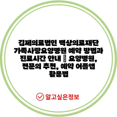 김제의료법인 백상의료재단 가족사랑요양병원 예약 방법과 진료시간 안내 | 요양병원, 전문의 추천, 예약 어플앱 활용법