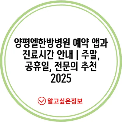 ✅ 양평엘한방병원의 예약 방법과 진료시간을 자세히 알아보세요.