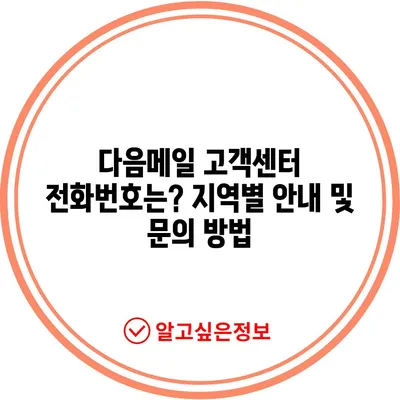 다음메일 고객센터 전화번호는? 지역별 안내 및 문의 방법