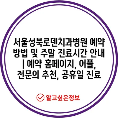 ✅ 서울성북로덴치과병원의 진료시간과 예약 방법을 알아보세요!