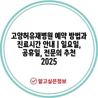 고양허유재병원 예약 방법과 진료시간 공지 | 일요일, 공휴일, 전연락 추천 2025 에 대해 자주 묻는 질문 TOP 5