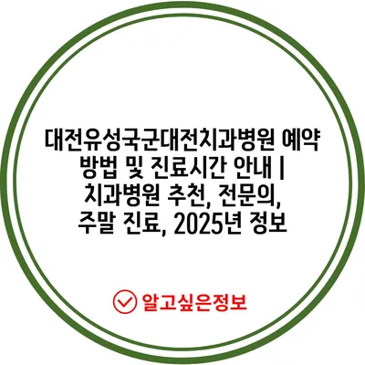 ✅ 대전유성국군대전치과병원의 진료시간과 예약 방법을 자세히 알아보세요.