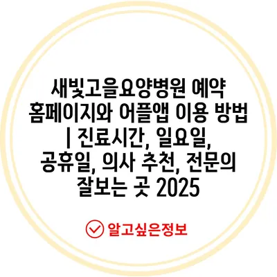 ✅ 새빛고을요양병원 예약 방법을 자세히 알아보세요.