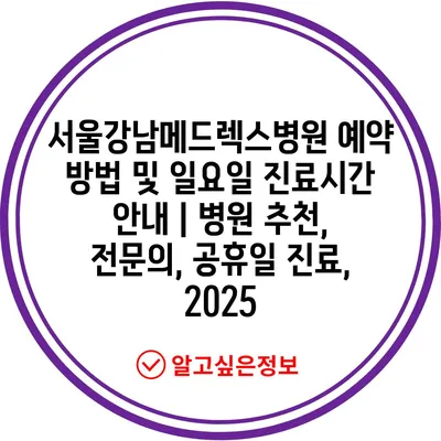 서울강남메드렉스병원 예약 방법 및 일요일 진료시간 공지 | 병원 추천, 전연락, 공휴일 진료, 2025 에 대해 자주 묻는 질문 TOP 5