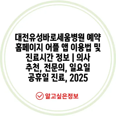 대전유성바로세움병원 예약 홈페이지 어플 앱 이용법 및 진료시간 정보 | 의사 추천, 전문의, 일요일 공휴일 진료, 2025
