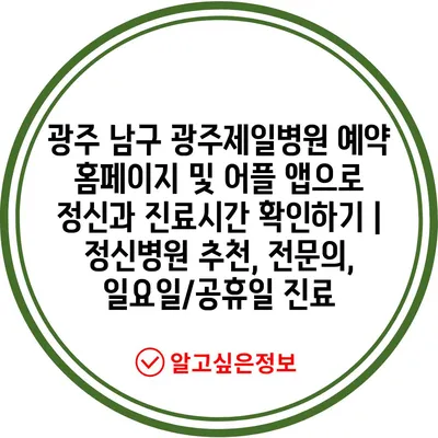✅ 광주제일병원의 정신과 진료시간과 예약 방법을 알아보세요.